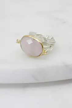 πŸ’ Torrey Ring with Rose Quartz – Handcrafted Elegance
